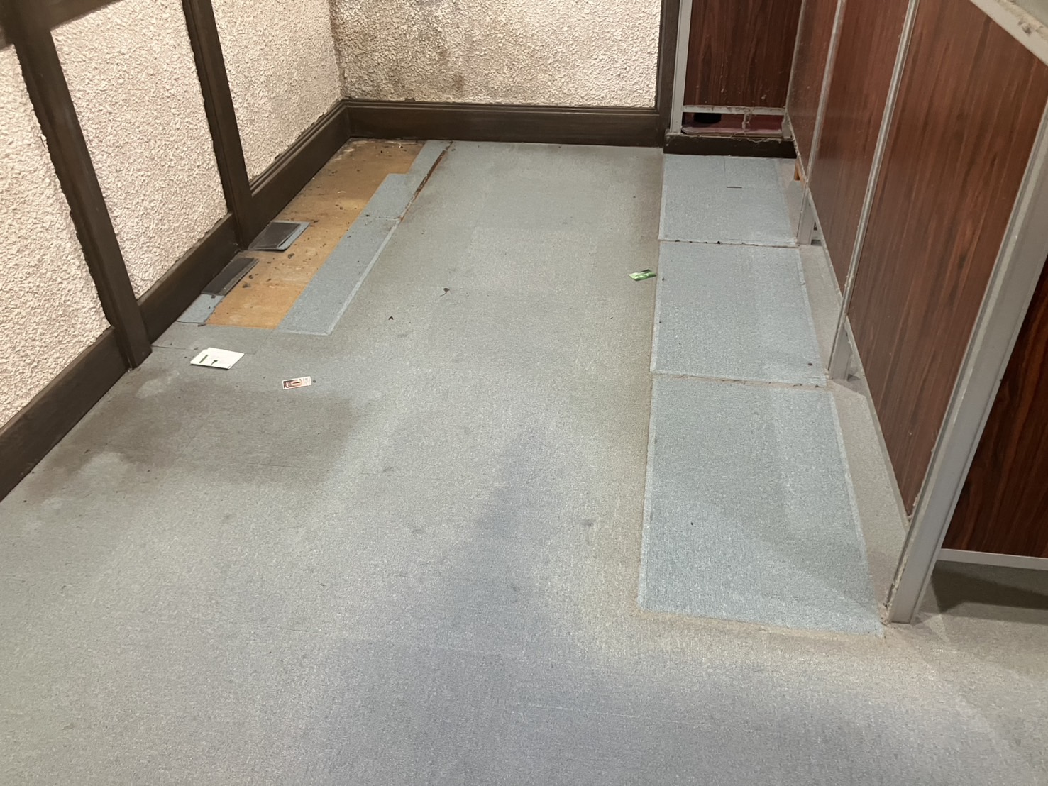 こんにちは、取手市で内装工事をしてる沼尻創美です。今回は、茨城県つくば市にあるゴルフ場施設の更衣室にて、床のタイルカーペット張替え工事を行いました。傷みや汚れが目立っていた床を新しいタイルカーペットに張替え。防音性や耐久性も向上し、働きやすく清潔感のあるオフィス空間に生まれ変わりました。