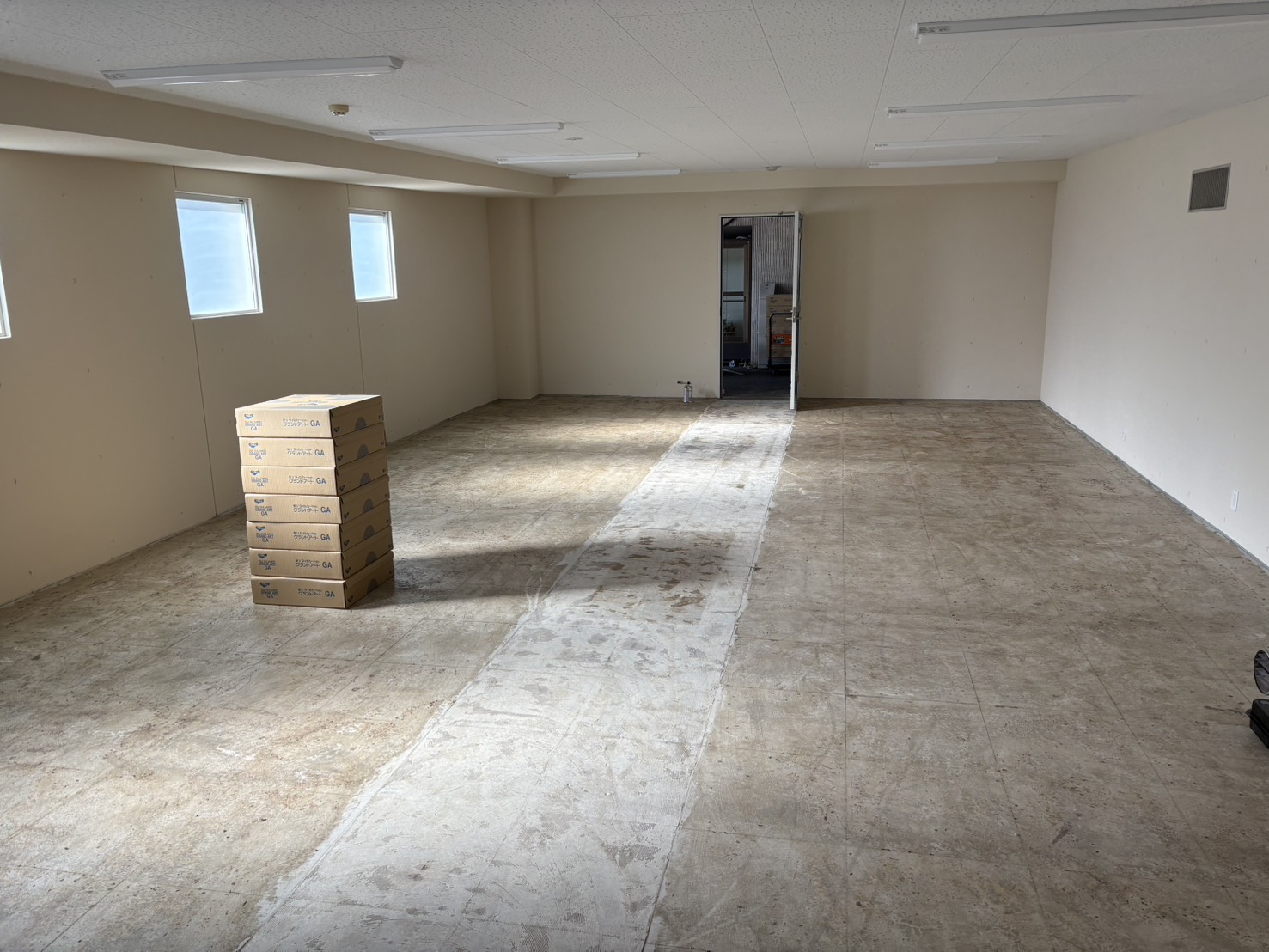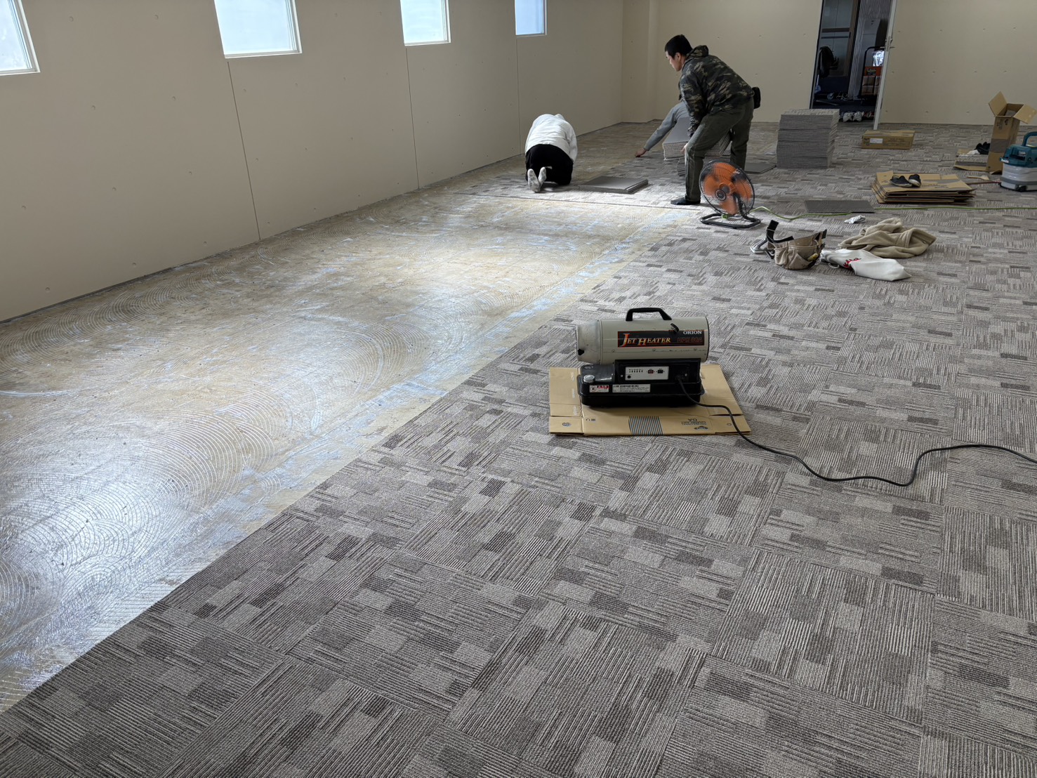 こんにちは、取手市で内装工事をしてる沼尻創美です。今回は、千葉県千葉市のゴルフ場(更衣室)にてタイルカーペットの全面張り替えをしました。